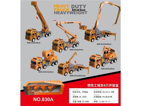 AS961146 惯性工程车4只,6款车随机4款混装