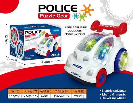 KS946573 电动齿轮万向警察车(带音乐+灯光)单色单款