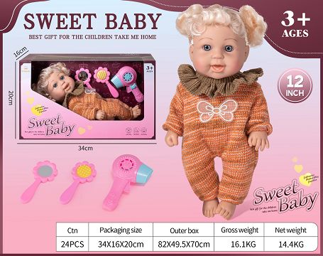 12寸全搪胶仿真娃娃带配...