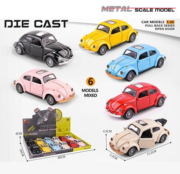 合金车模甲壳虫回力三开门...
