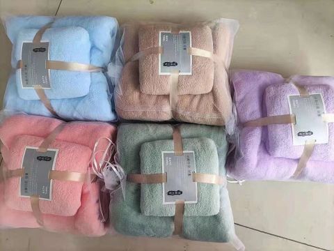 KS963303 35*75/70*140CM超细纤维(纯涤)素色珊瑚绒毛巾套装 2条/套缸染260G