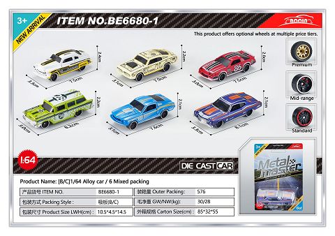 1:64滑行合金车6款混...