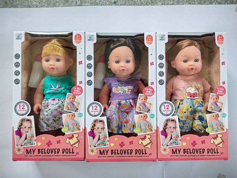 12寸搪胶女娃喝水尿尿带...
