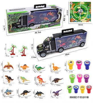 KS936136 手提礼盒滑行货柜车带12只恐龙+1飞机+1滑行沙滩摩托车+2树+1地图