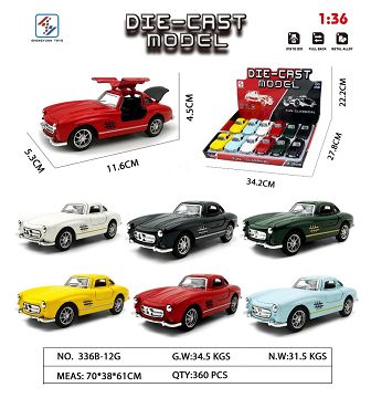 产品名称:1:36合金回力仿真复古鸥翼门三开奔驰老爷车(复古版12PCS)